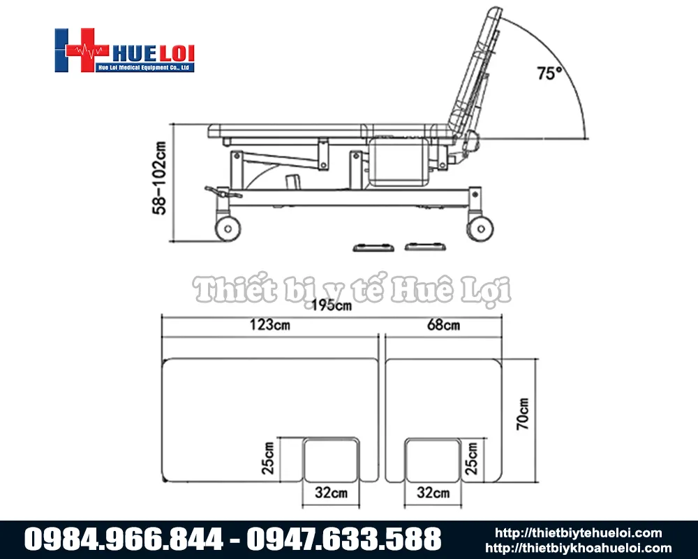 Tựa lưng có thể điều chỉnh linh hoạt với góc nâng lên đến 75°, đáp ứng nhiều tư thế khám khác nhau. Dải chiều cao rộng từ 58 – 102 cm giúp bàn phù hợp với đa dạng thể trạng bệnh nhân, đồng thời hỗ trợ tư thế làm việc ergonomics cho nhân viên y tế, giảm mỏi lưng và áp lực cơ thể khi làm việc lâu dài.